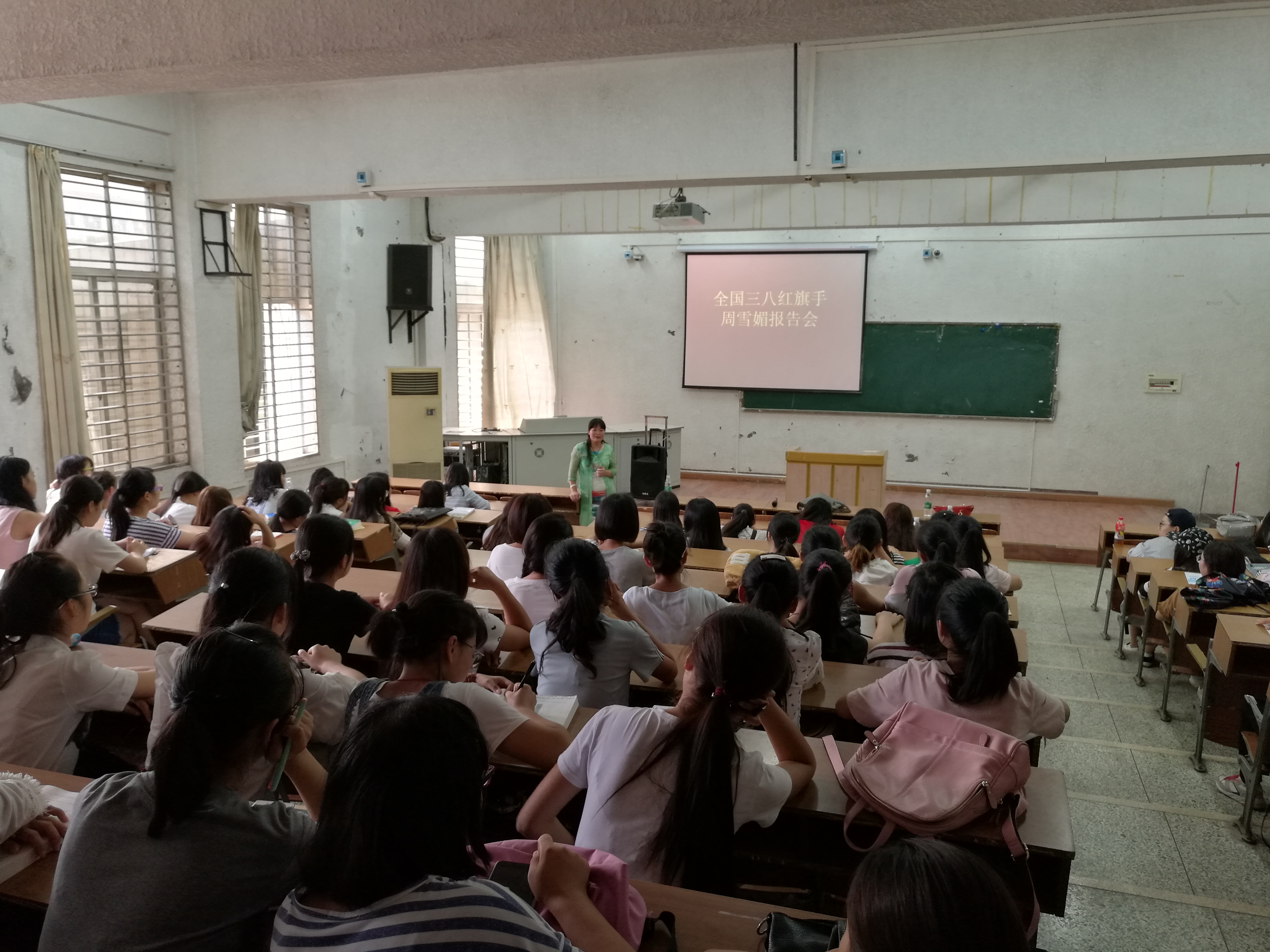 8月31日下午4:00时在5教203教室,全国三八红旗手、必赢bwin官网99届校友周雪媚应邀到必赢bwin官网作报告。
