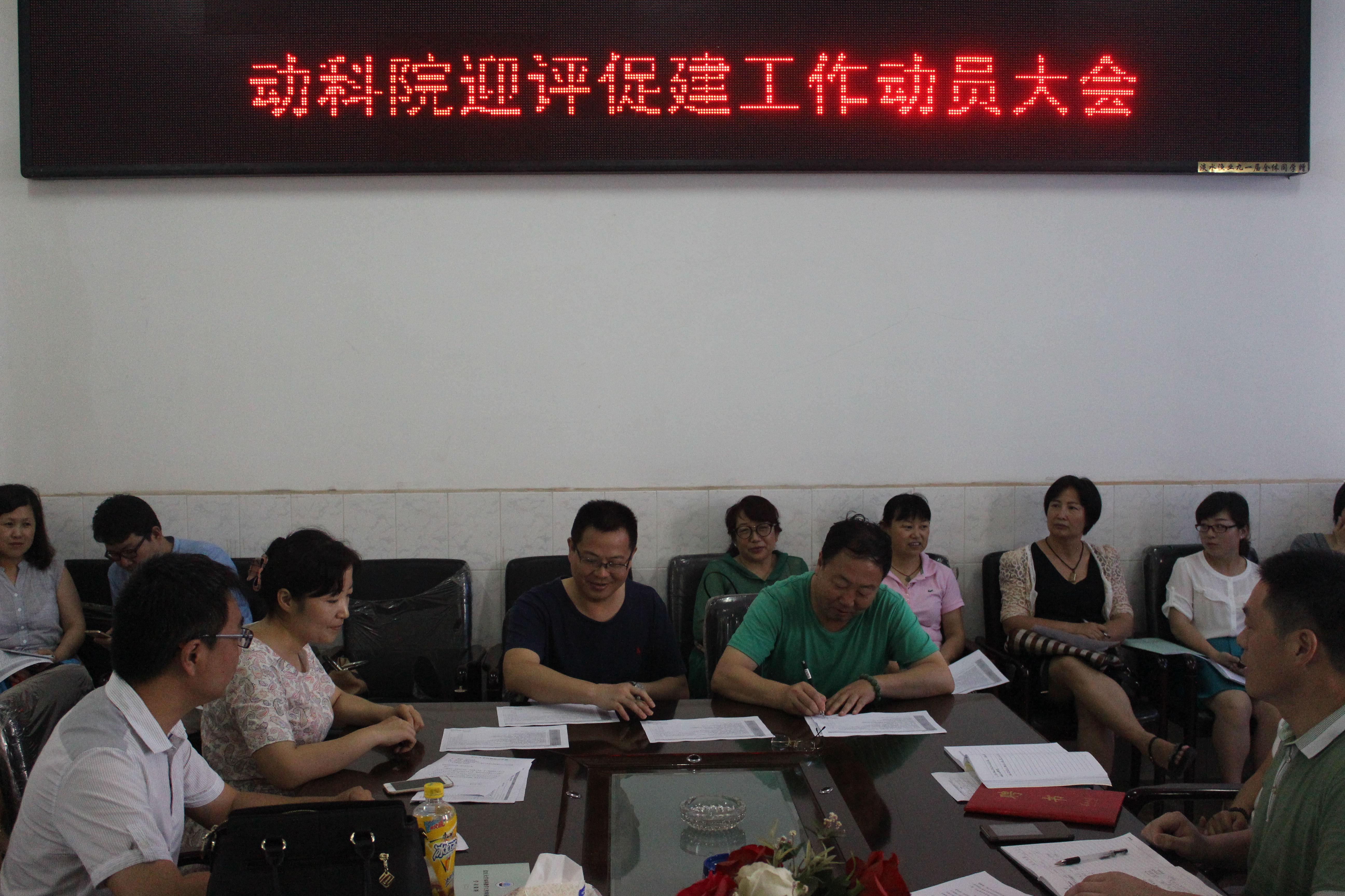 6月24日下午,必赢bwin官网全体教师济济一堂,“动科院迎评促建工作动员大会”在学院会议室隆重举行。会议由学院党委书记王凌华主持。副院长李鹏宣读了“关于印发《必赢bwin线路检测中心动物科学学院本科教学工作审核评估评建工作方案》的通知”,对学院的迎评促建工作从启动、自评自建、专家审核和整改提高四个阶段进行了整体安排,并将每一项任务的内容和完成的截止时间进行了具体落实并责任到人。院长杨玉莹动员并号召大家都要积极投身到教评工作中来,积极配合支持学院迎评促建工作!学院党委书记王凌华要求全体老师一定要严格执行学院教评工作安排。之后学院与教师代表签署了教评责任书,学院的迎评促建工作正式启动。